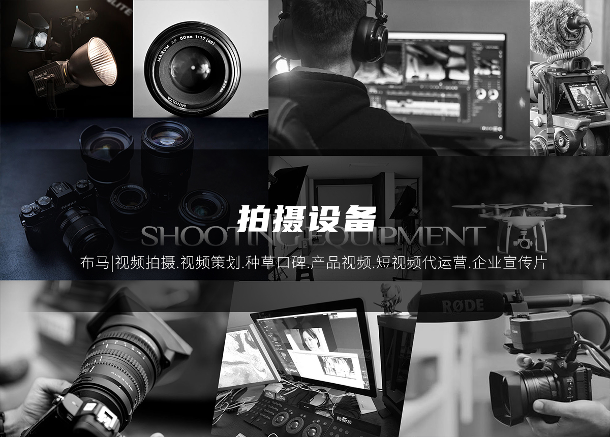 拥有佳能、REDONE、SONY、CANON等在内的适用于不同拍摄要求的电影级、广播级设备、大疆无人机航拍设备、另配备轨道、摇臂、灯光等多种辅助拍摄器材和苹果编辑机工作站高端达芬奇调色设备等
