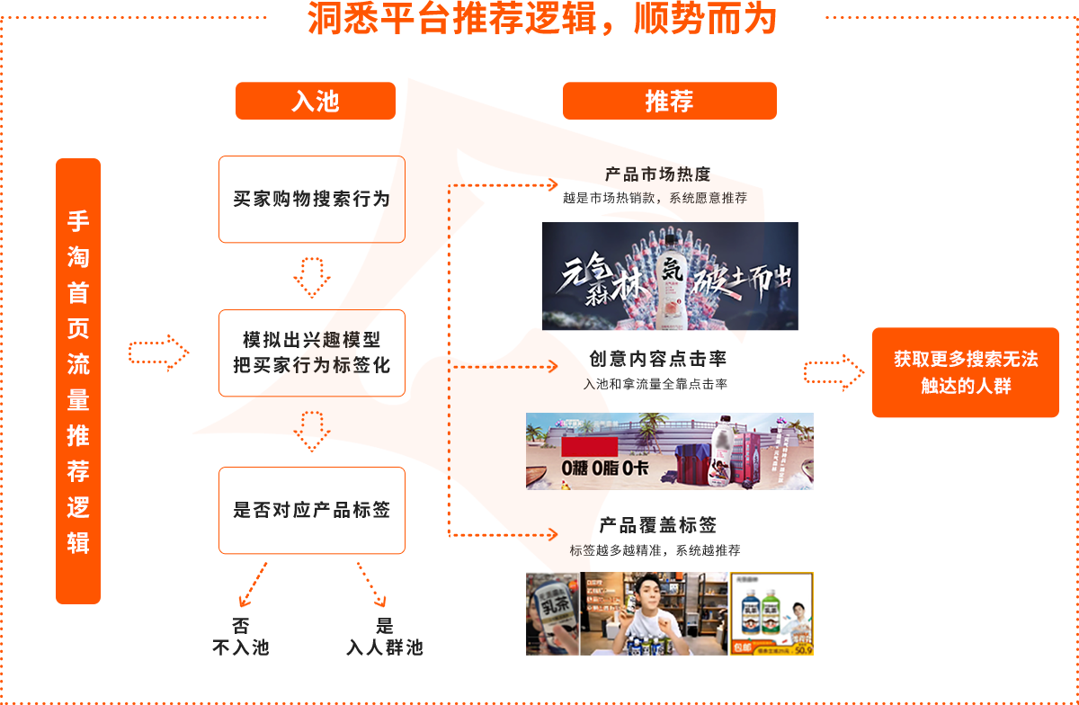当下手淘 70 %已内容化,淘宝从整体流量版块到推广模式,都在往信息流模式发展。在内容营销的大趋势下,营销与创意的投入都要花费更多的心思。合理利用平台资源,找到目标消费人群,借助内容吸引关注,潜移默化地引导市场消费。