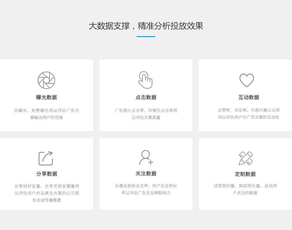 多条广告同时在线时,系统将根据广告质量分值智能分配曝光。(广告质量分值,来自于用户对广告的赞、评论、“不感兴趣”、分享、“查看详情“等操作)