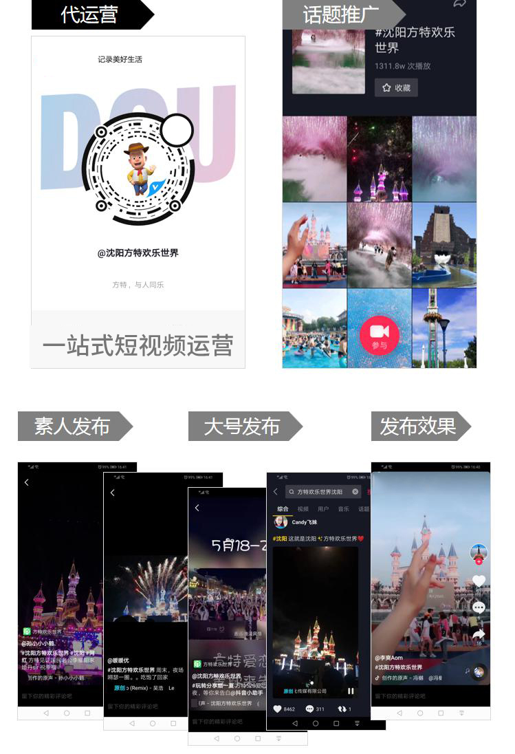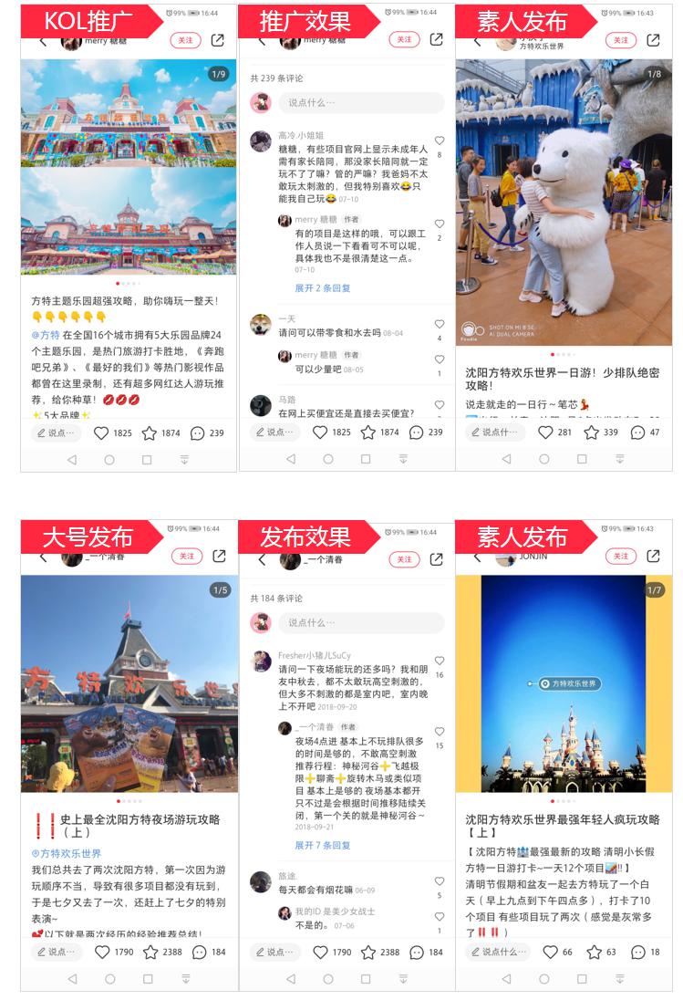 - • 推广效果 : 整体曝光量超过500万,总互动量超过44.9万,双微平台新增粉丝超过2万名,有效提升目标人群赴沈阳方特欢乐世界意愿并积累了目标受众。