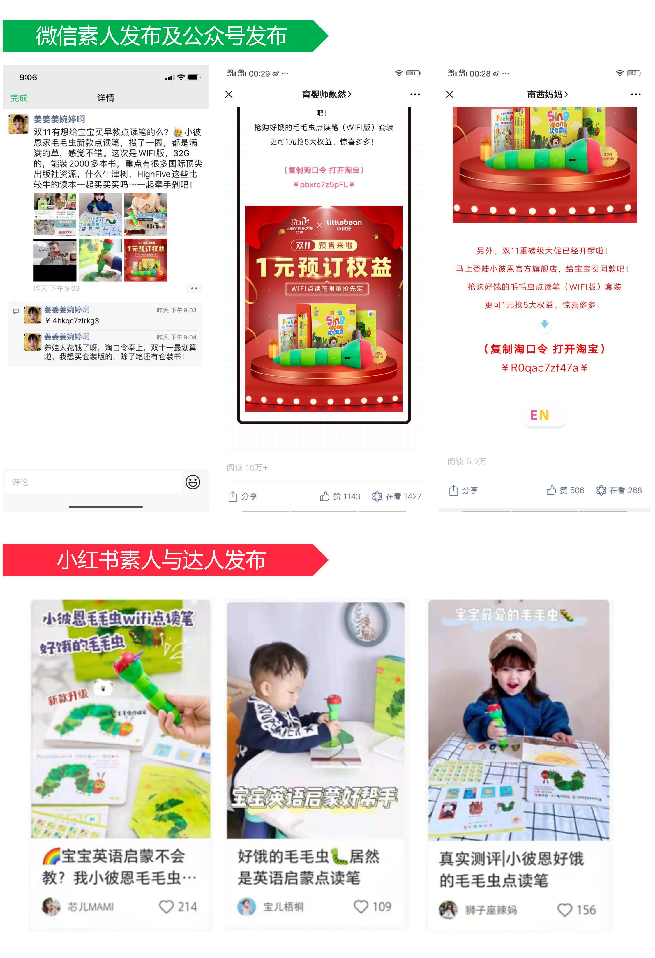 - • 案例背景 : 小彼恩致力于成为智慧早教生态的领潮者,新品“小彼恩好饿的毛毛虫WiFi版”预售上市,需要为新品宣传,从而能获得有效转化。