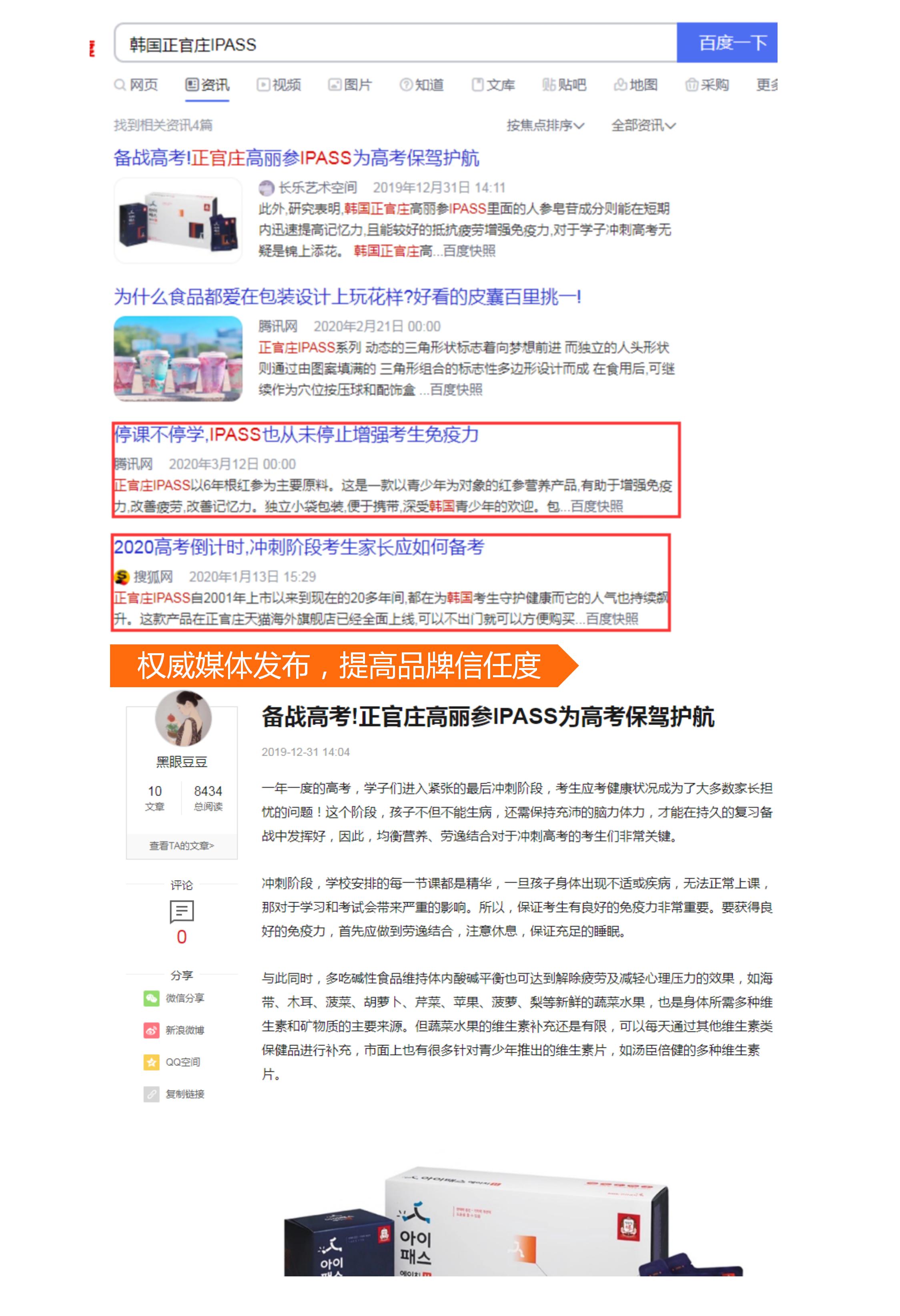 - • 案例背景 : 韩国正官庄IPASS,产品热度局限,在中国市场知名度不高,亟需开拓中国市场,。