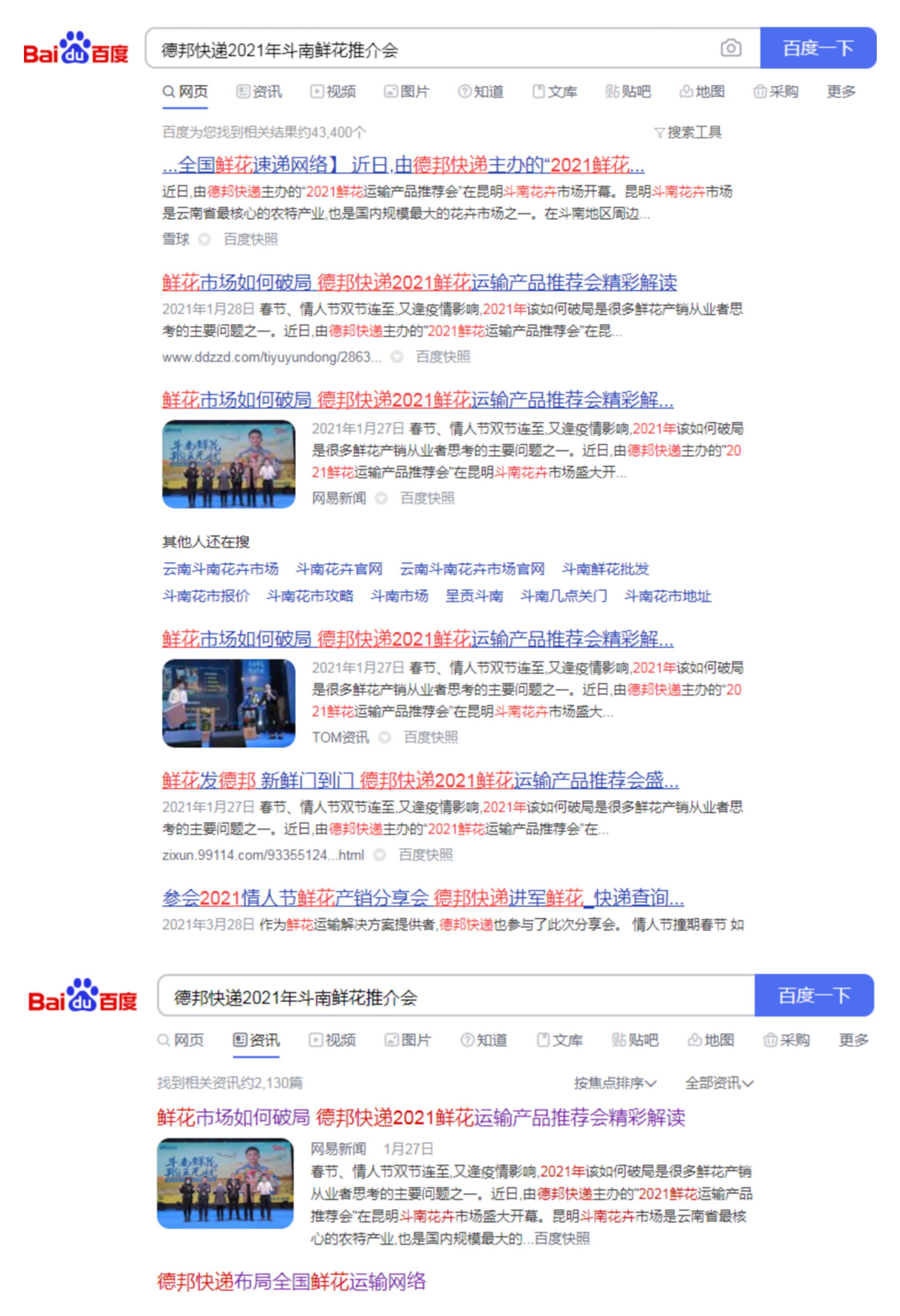 - • 案例背景 : 春节、情人节双节连至,又逢疫情影响,2021年该如何破局是很多鲜花产销从业者思考的主要问题之一。近日,由德邦快递主办的“2021鲜花运输产品推荐会”在昆明斗南花卉市场盛大开幕。昆明斗南花卉市场也因此成为德邦快递布局全国鲜花速递网络的重要基地之一。