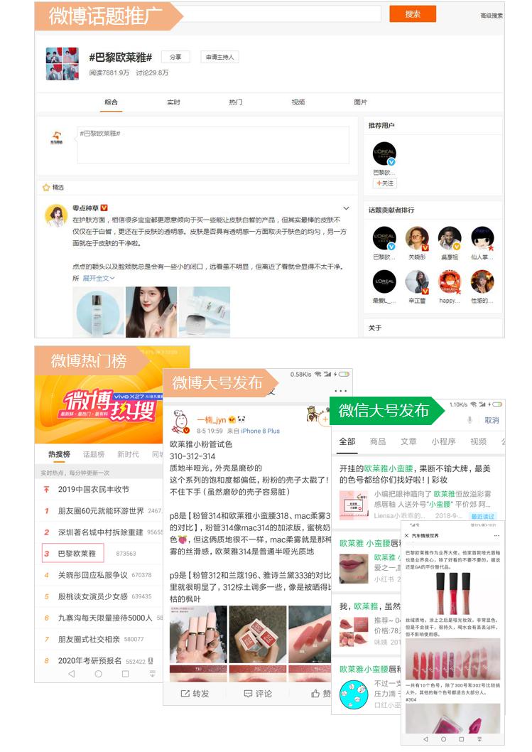- • 整合策略 : 新媒体整案营销,通过微博话题、热门榜、微信大号高强度曝光,KOL达人、短视频、红书、短视频等平台立体传播。